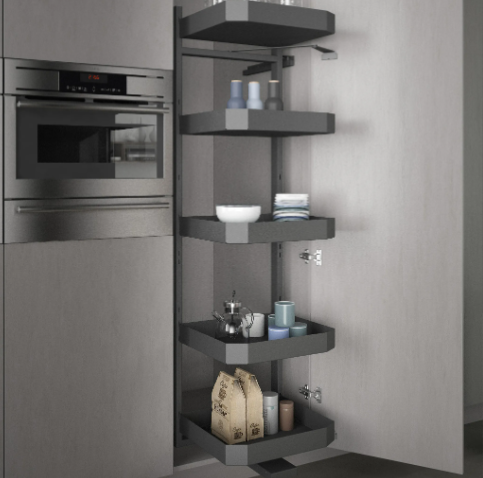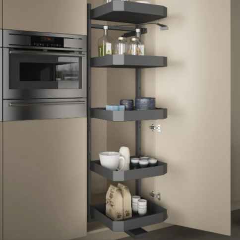 Innovative swing out larder design, featuring 5 anthracite large capacity baskets.