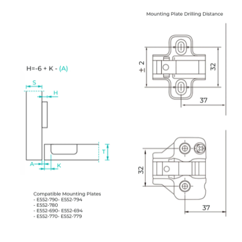 Compatible Mounting Plates: E552-790 - E552-794, E552-780, E552-690 - E552-694 and E552-770 - E552-779
