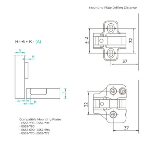 Compatible Mounting Plates: E552-790 - E552-794, E552-780, E552-690 - E552-694 and E552-770 - E552-779