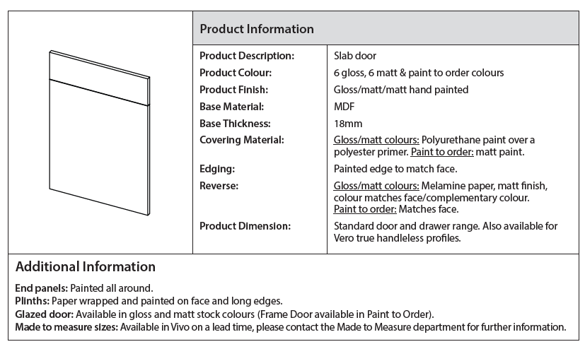 Slab doors are very much the modern look in kitchens and Vivo lives and breathes clean-lined contemporary style. Constructed in sturdy 18mm MDF, each door features TKC's customary painted and lacquered finish all around, including those all-important edges. Delamination is therefore impossible! There's a choice of 6 tactile matt colours, with a flawless surface you'll love to run your fingers along.